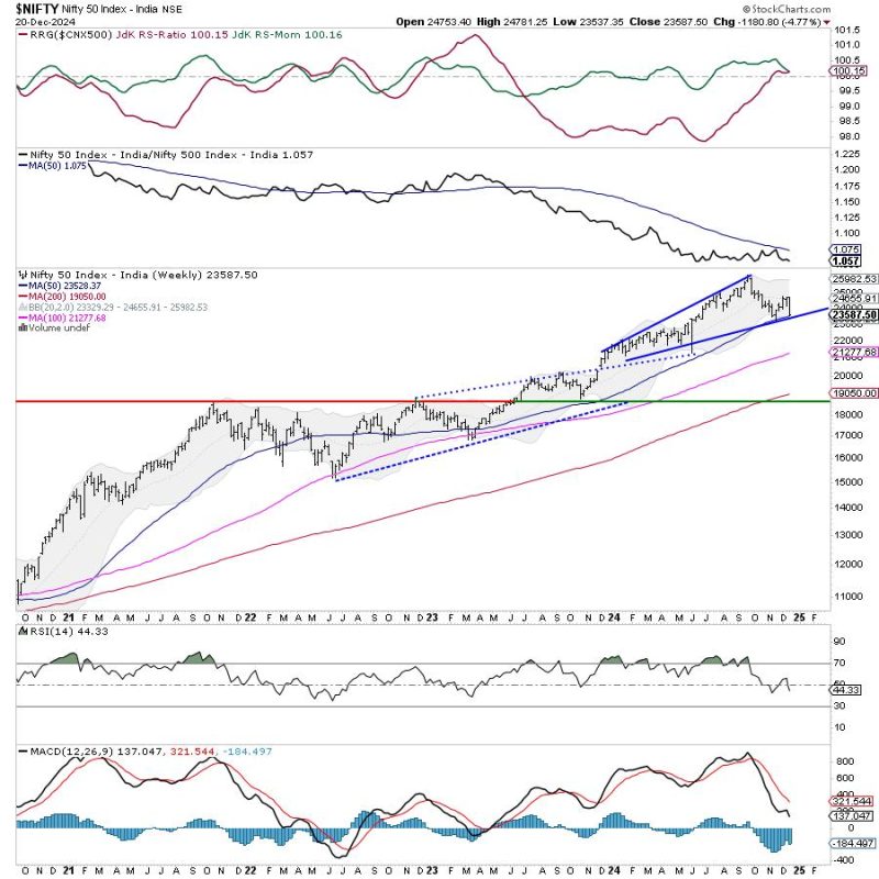 Next week is truncated, with the Christmas holiday on Wednesday. Expect a tepid start to the week on Monday. The levels of 23750 and 23830 would act as potential resistance points. The supports come in at the 23500 and 23285 levels on the lower side.